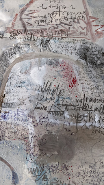 The experience for anyone attempting to pay attention is that of being lost in a territory of strange lines and signs, or, conversely of coming on a journey from a wilderness of scribble into meaning/s that can be recognized and understood. In either case, a participant in the work is tasked with making their own poem and meaning. One must work/ play randomly/whimsically, just as the eye is carried, or by some unknowable method, as suits.